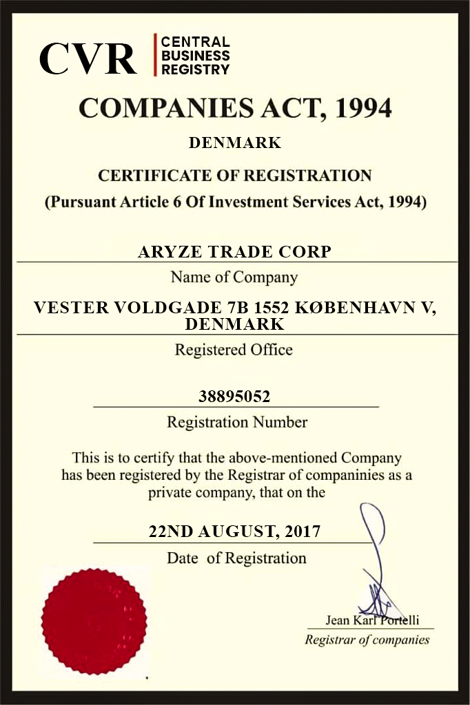 We are Registered, Certified and incoporated by Danish Business Authority. You can see details by clicking here